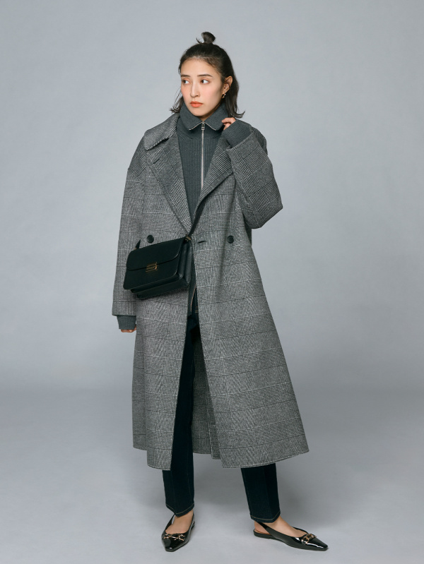 濃淡をつけやすいモノトーンは、冬コーデの着膨れ防止にも効果てきめん。黒いダウンコートのインナーをグレートーンでまとめてメリハリをつけて着こなせば、防寒力をキープしつつも軽やかに仕上がります。コーデのアクセントになるチェック柄のワイドパンツで、さらにシルエットをすっきりと。吸湿発熱性のあるウォームリザーブ素材は、シルエットの美しさと快適なはき心地を実現した冬の人気No.1パンツです。