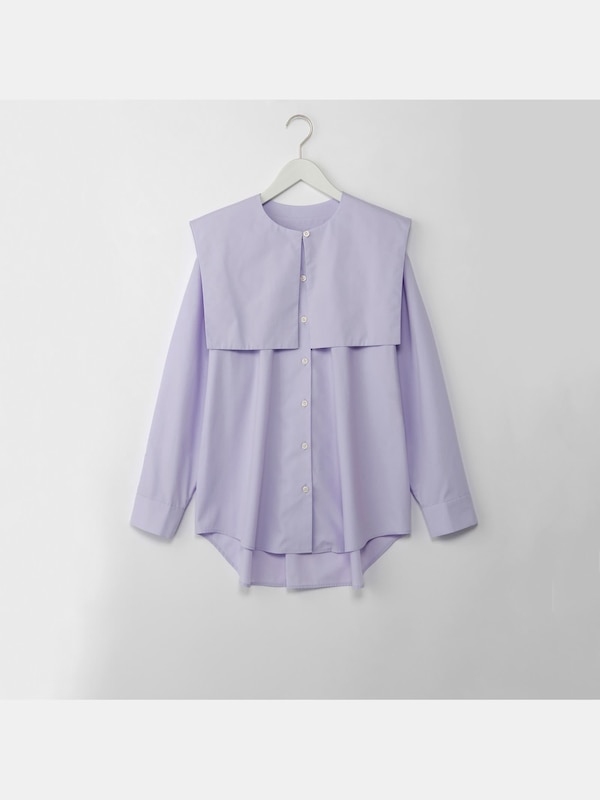 スクエアデザインの襟は取り外しができるので2WAYでスタイリングが楽しめます。取り外した襟だけをニットやプルオーバーと合わせることも可能。ヘムアウトしてデニムやパンツと合わせたスタイルがおすすめです。