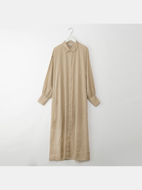 リネンブレンドシャツワンピース (長袖)
