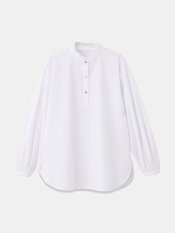 フリルネックビジューボタンブラウス(長袖)