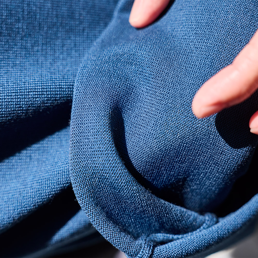 表には上質なメリノウール、裏にはストレッチ性のあるポリエステルを採用。品の良さの決め手となるニットのハリ感をキープしつつ、洗濯しても型崩れしにくい。更にはシワにもなりにくく、デイリーに活躍。