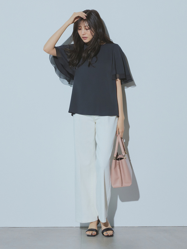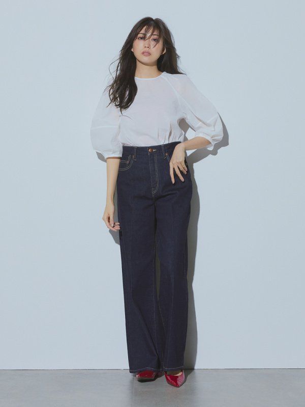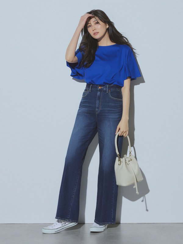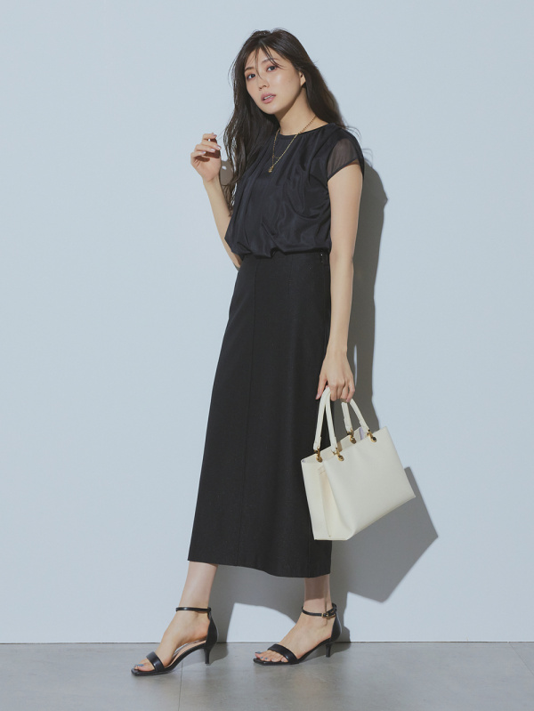 メリハリボディだからこそ、ワンツーで決まりやすいのが強み。トップスに華があるぶんボトムで引き算するとバランス上々!