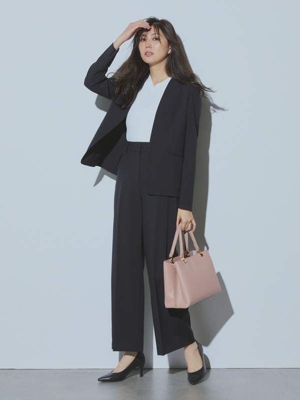 身体に存在感があるためシャープに着映えるスーツは大得意!Vネックのカラーレスジャケットを選べば、よりスラッと洗練されます。