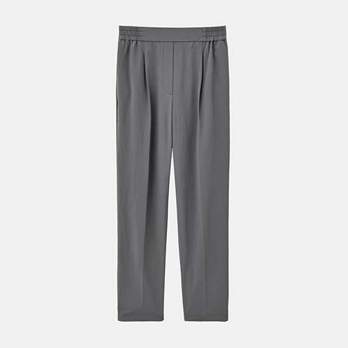 きれいめが似合うストレートタイプ。スポーティーなテック素材に上質感やベーシックムードを添えるイメージで、合わせをチョイス。